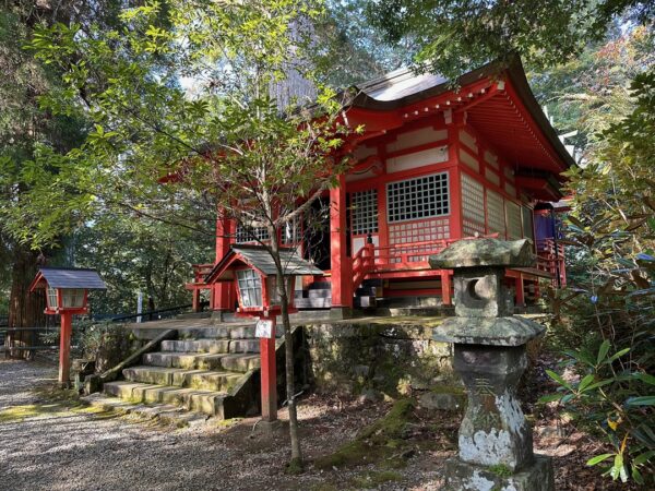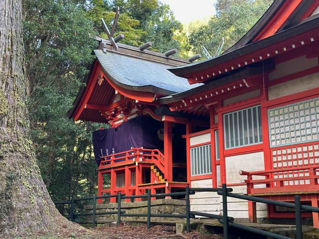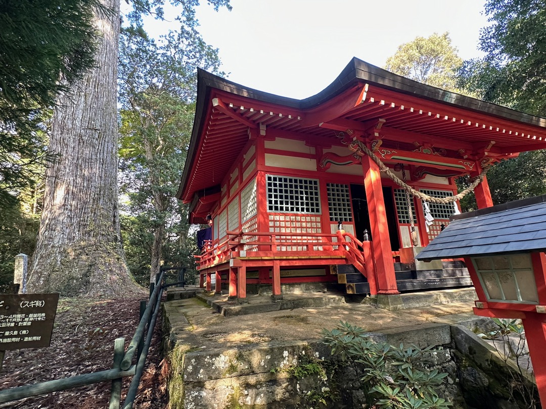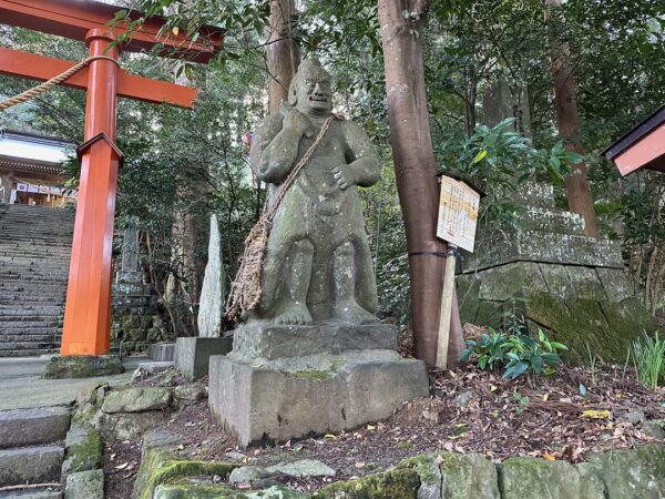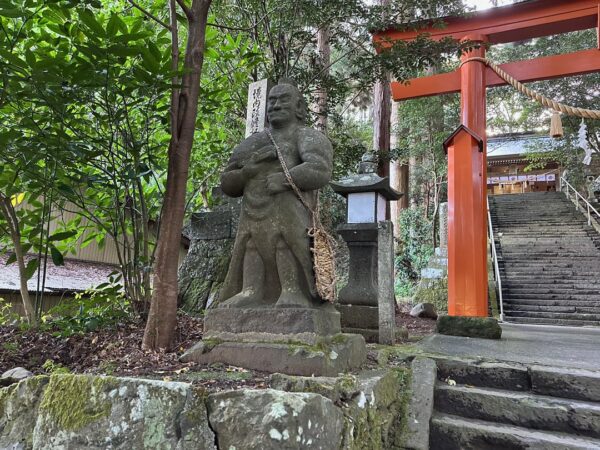 朱色の神社はやはり美しいですね。と見とれていると何やら巨大なものが左側に見えます。