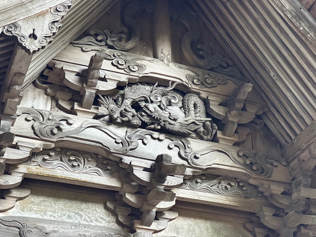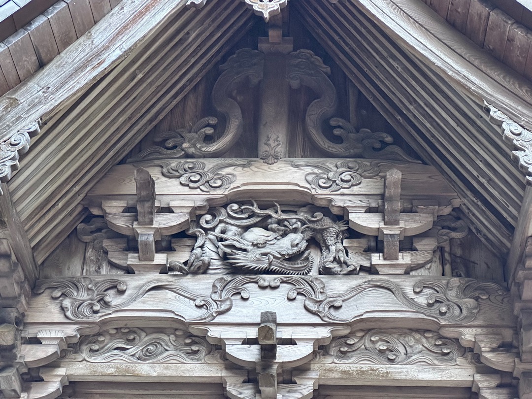 妻壁の彫刻もすごいです。龍の顔ですね。