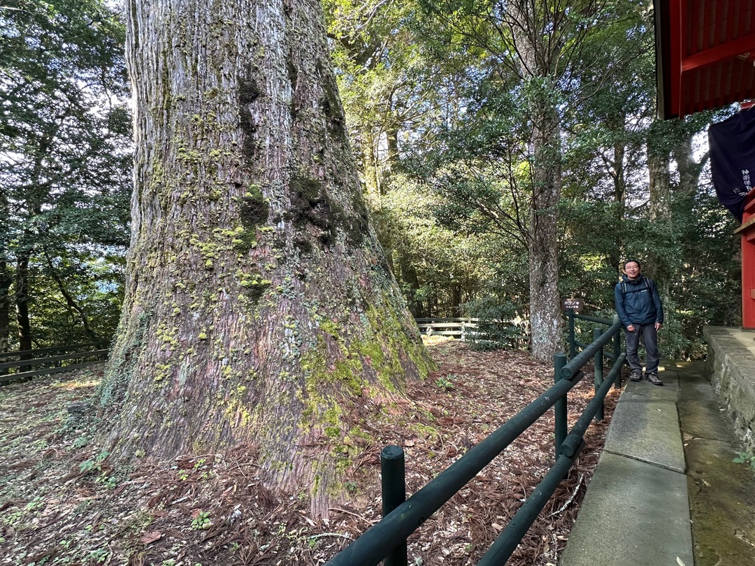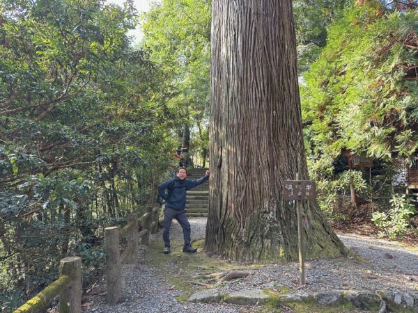 比較のために真横に並んでみました。この木の巨大さに比べれば、先ほどの杉の木が爪楊枝みたいに見えます。