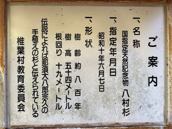 八村杉というらしいです。杉の木の幹周りランキングで16位になるようです。今まで観た杉の木で一番大きな杉の木なのではないかと思いましたが、高知県で観た杉の大杉 南杉(ランキング8位)の方がもっと大きかったようです。それにしても大きいです。