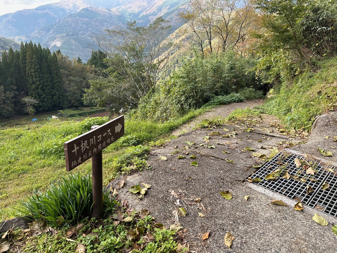 この立て札に沿って歩き、もうすぐ駐車場というところで、