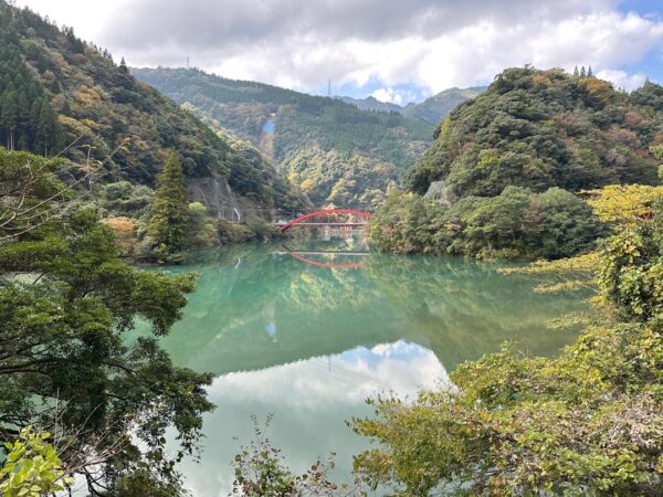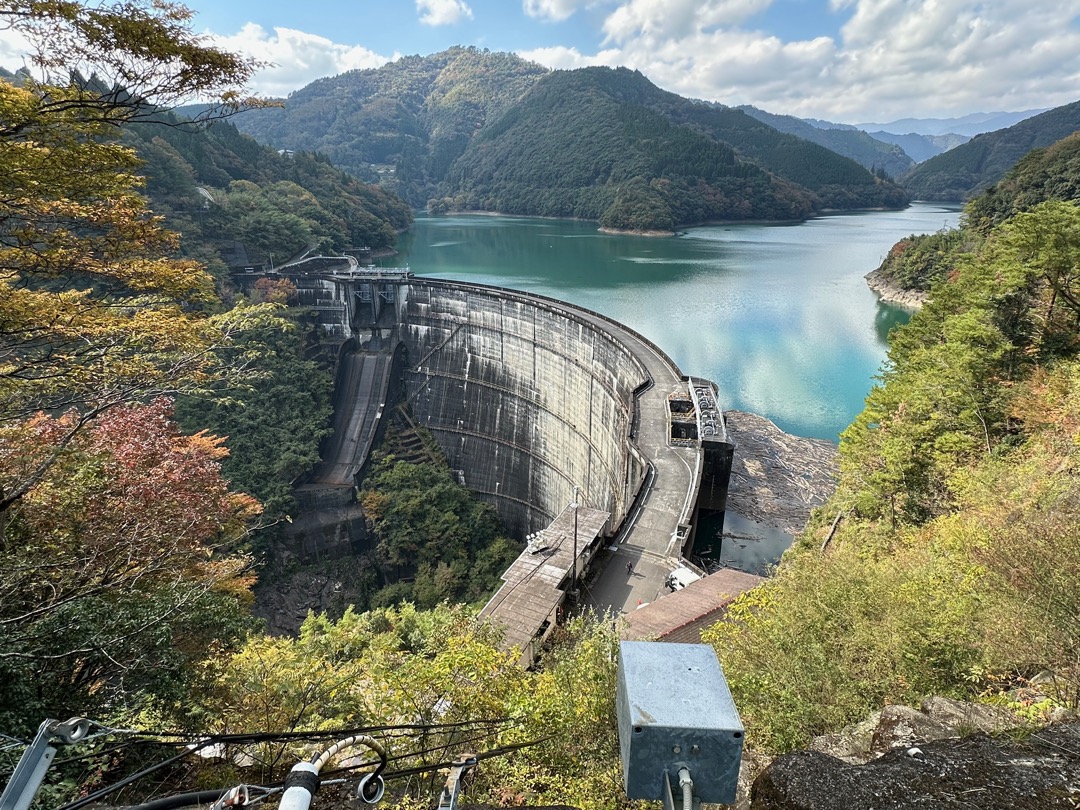目の前が日本で最初に作られたアーチ式コンクリートダムの上椎葉ダムでした。堤高 110.0m、堤頂長 341.0mです。