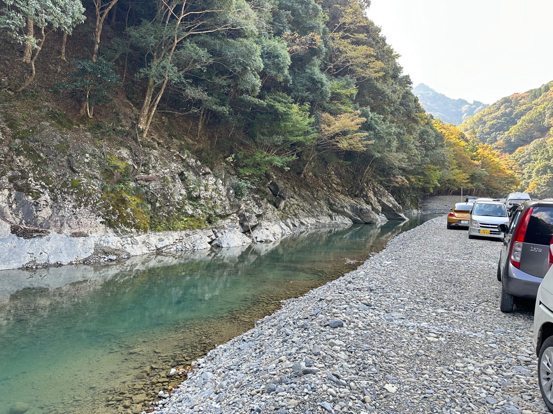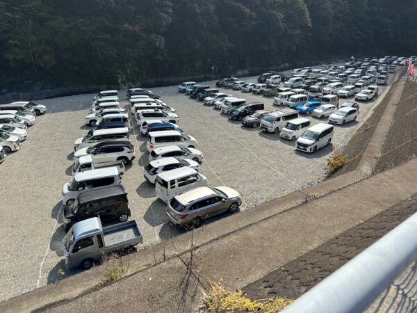 すぐにスーパーに向かいましたが、スーパに向かう道は通行止めで、平家祭り臨時駐車場へ誘導されました。数百台は駐められそうな大きな駐車場です。(と言っても河原ですが)