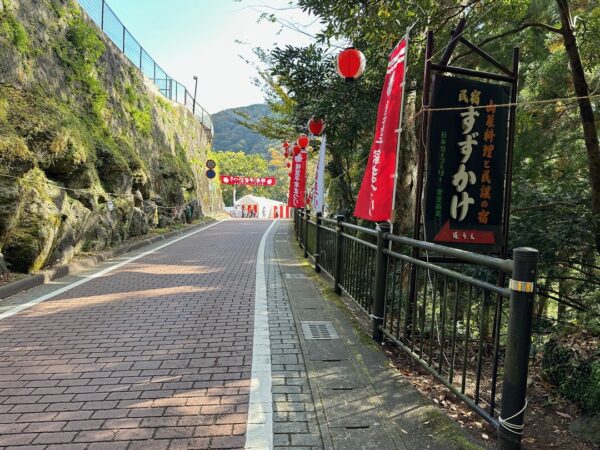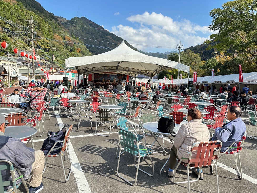 ここに来る少し前の看板で、椎葉平家まつりという人がたくさん集まるお祭りが今日と明日行われることを知りました。そして今、このあたりでは唯一のスーパーであるAコープ 椎葉店の前の大きな駐車場が、その祭り会場であることに気づきました。