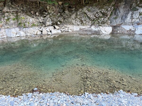 歩いて行くとまず急なヘアピンカーブがありました。ここは切り返しをすれば何とかなりそうでした。ただし、以前このようなところを切り返してクリアした時にスタビライザーのブッシュがズレてしまったようで、変な音がするようになりました。その後ブッシュ交換で良くなりましたが、同じ目にあったかもしれません。