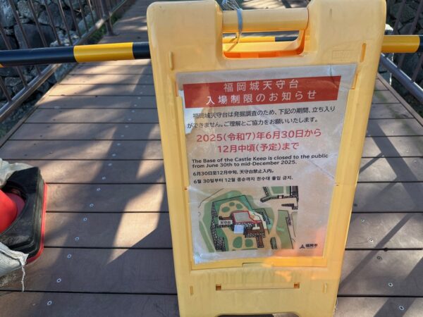 福岡城は黒田長政によって築かれた城です。天守台は発掘調査のため入れませんでした。