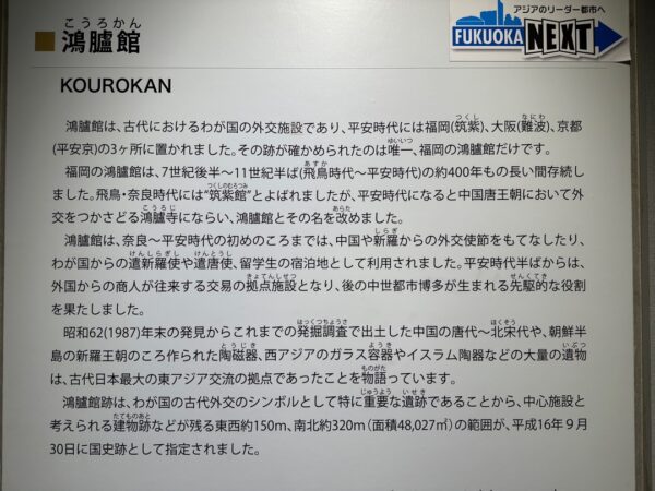 ここは、7世紀後半〜11世紀半ばに存在した外交の拠点を担う施設の跡です。入館料は無料です。