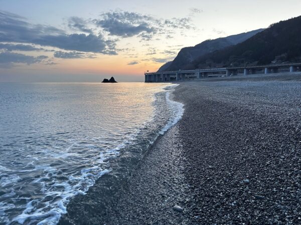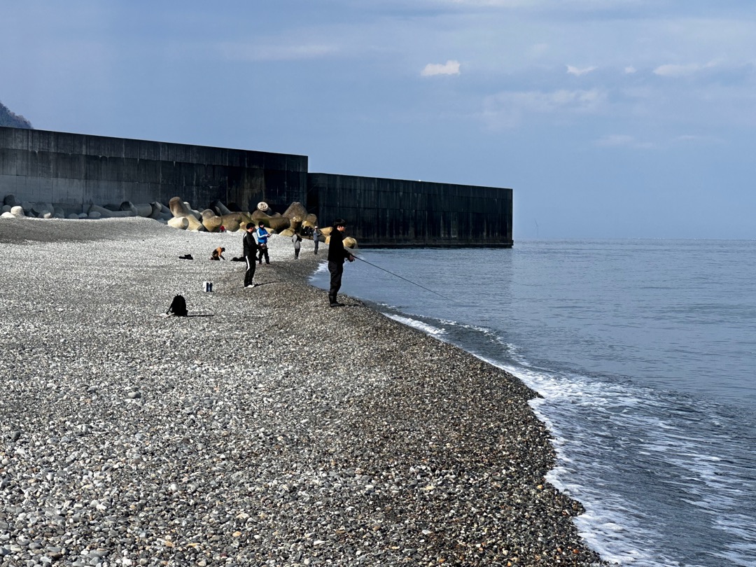 歌海岸まで行ったあと、親不知海岸まで戻ってきました。翡翠を探している人より、釣りをしている人が多かったです。ホタルイカを目当てに青物の魚が寄ってくるので、この時期はよく釣れるのだそうです。