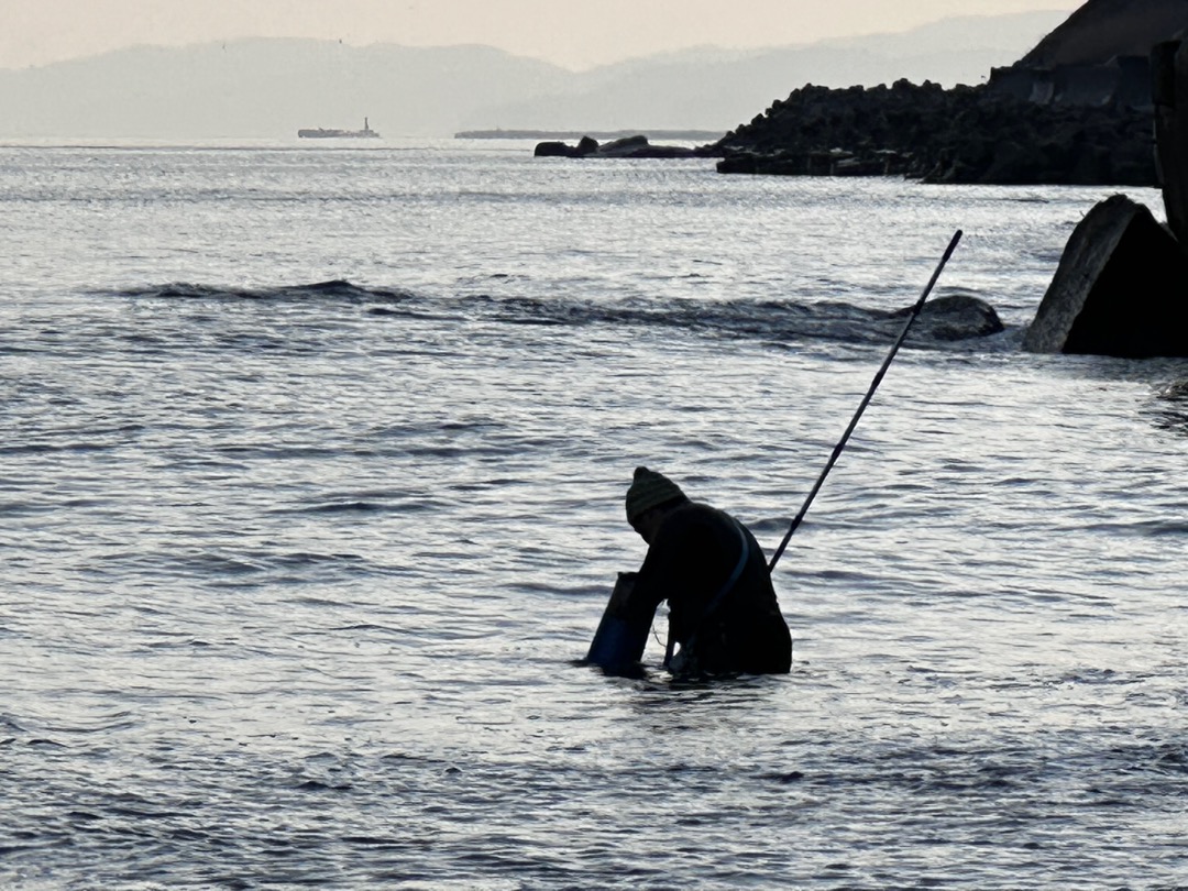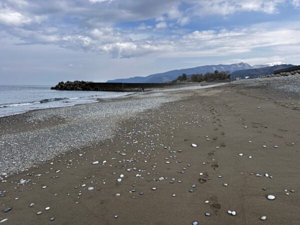 今日は、昨日より潮が引いていました。ウエイダーは着用しないで浜辺で探すことにしました。約1時間の翡翠探しでした。