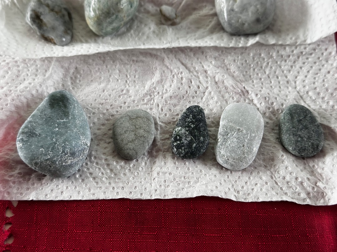 これは、濡れている時はきれいだったのですが、乾くと普通の石みたいです。いずれ磨いてみようと思った石たちです。