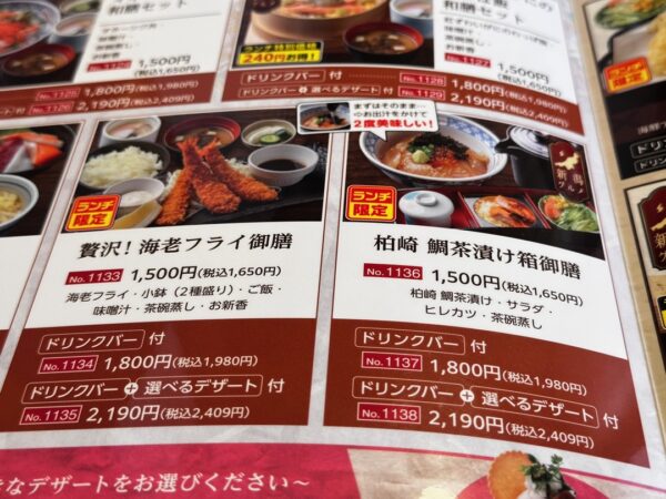 海老フライと鯛茶漬けのどちらにしようかを迷った結果、