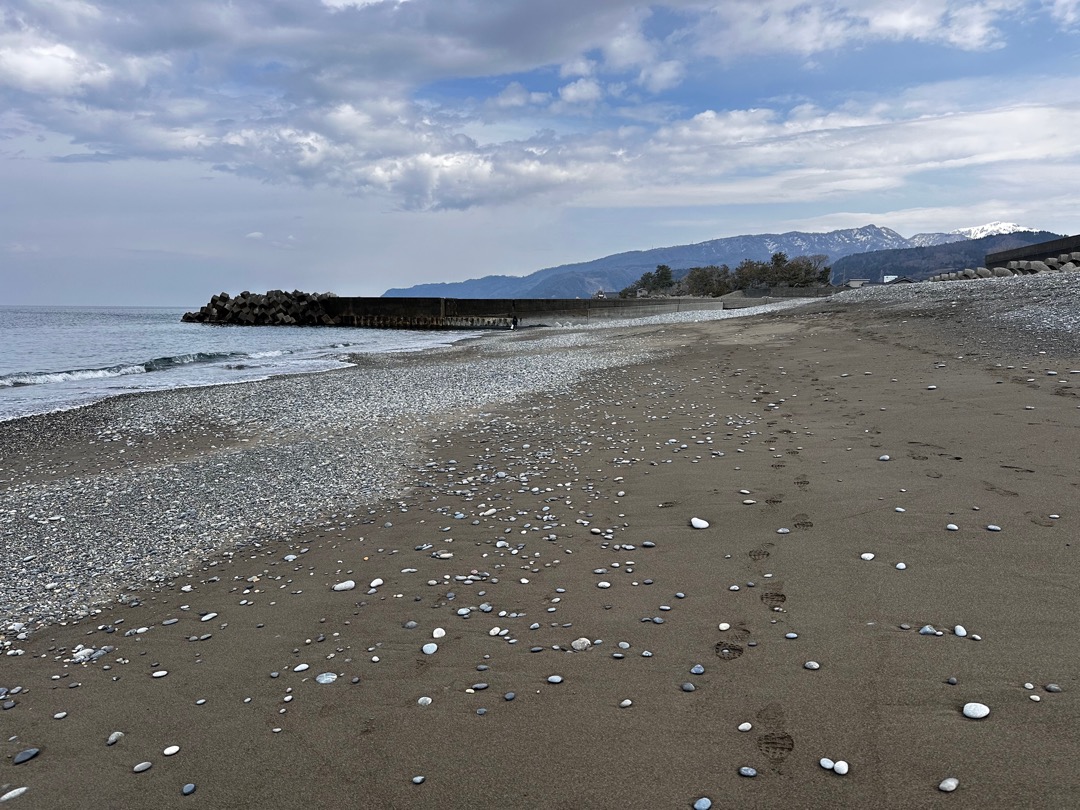 歌海岸です。翡翠探しをやっている人がひとりだけいました。今日はないとおっしゃっていました。