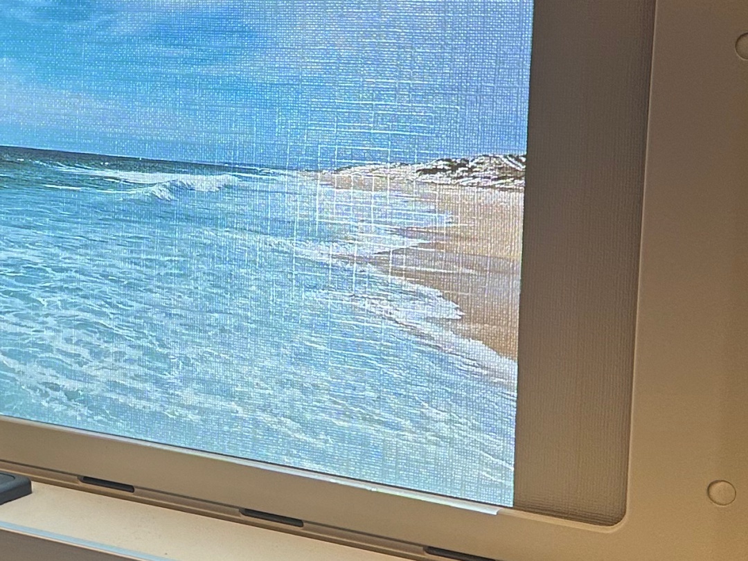観るものが動画であることと、斜めから見るので気にならなそうですが、確認ポイントになります。だめだったら、小さいスクリーンか代わりになるものを検討しようと思います。