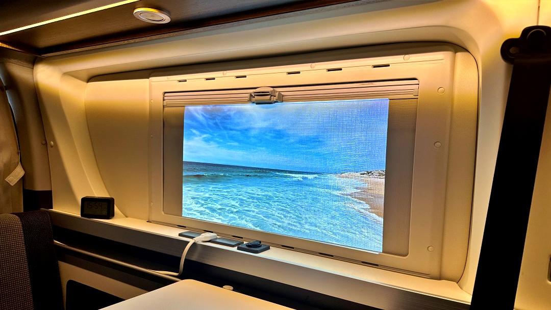 自宅では、もう何度も映画を観ていて大満足なのですが、車の中での本格的な使用は、次の旅からとなります。車のシェードは縦横の模様が入っていて、正面から見ると反射して気になるかもしれません。