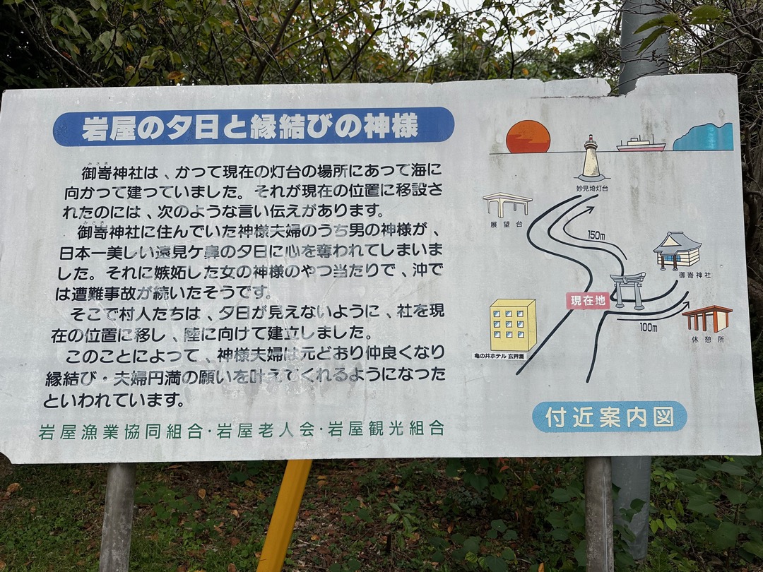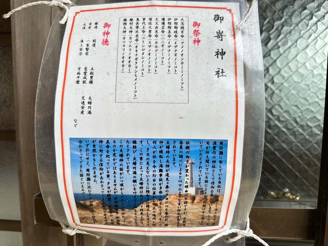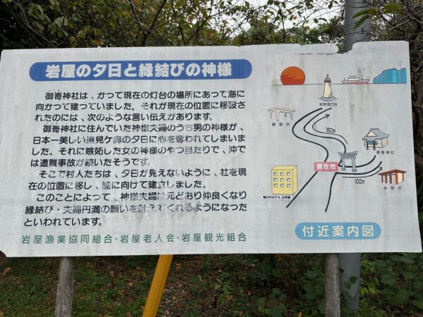 御嵜神社は、もともと灯台の場所にあったものの、とある理由があって今の位置に移したと、その理由が書いてあります。