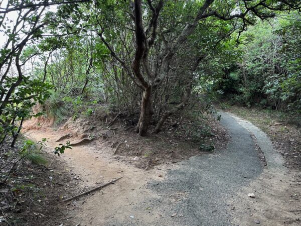 途中で灯台と神社の分かれ道がありました。まずは灯台から観ることにして左の道を進みました。