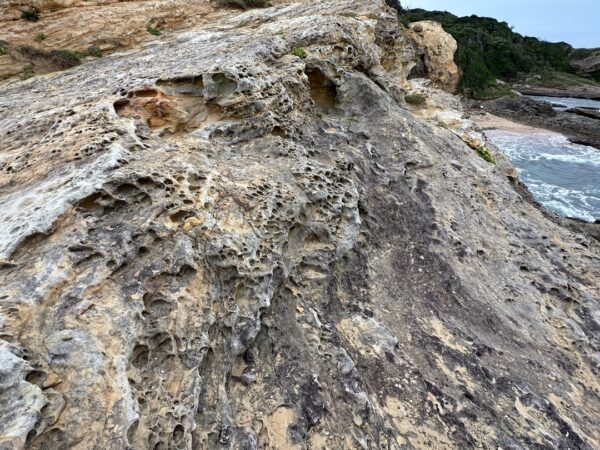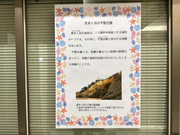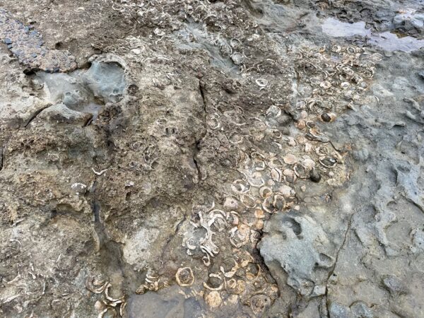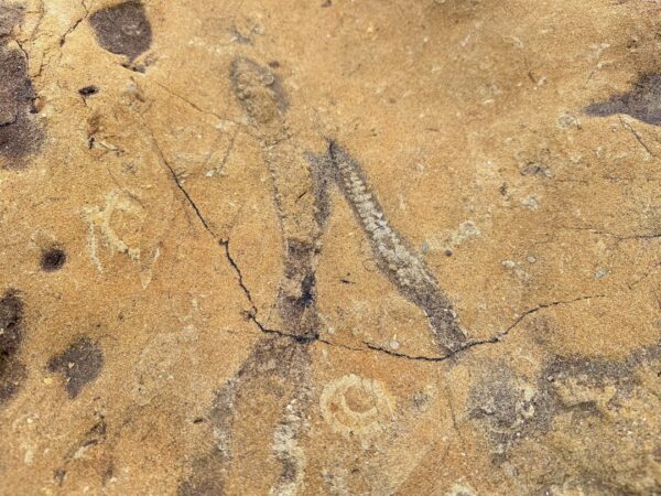 足元には何かの化石か生痕化石のようなものがあります。