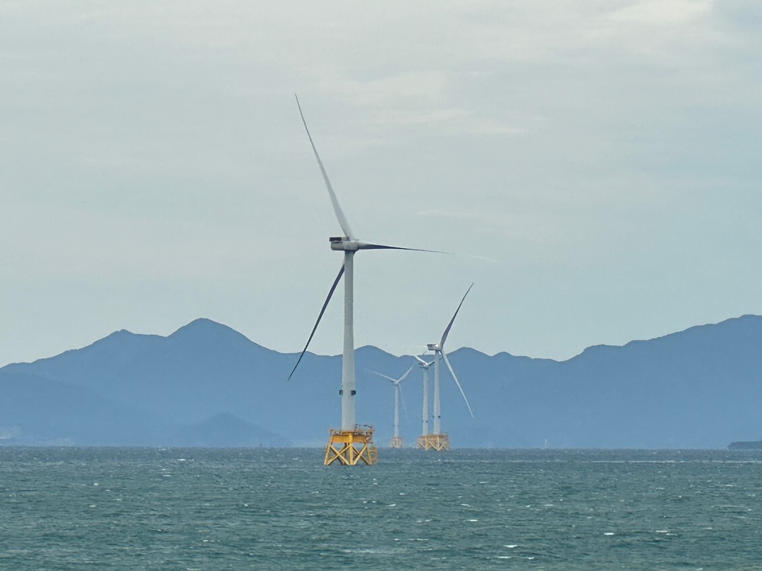 ここから洋上風力発電がたくさん見えます。