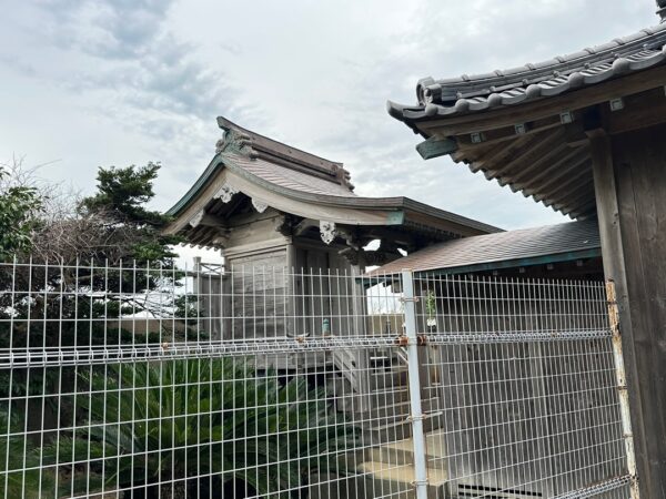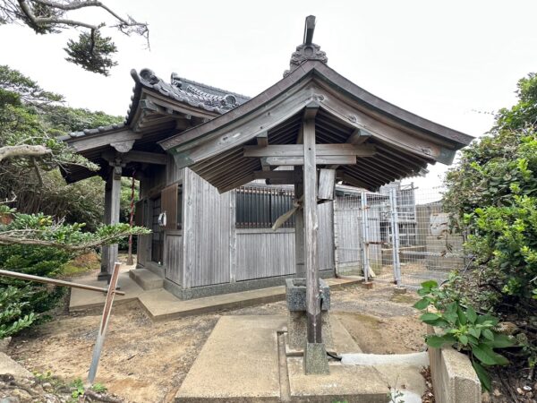 手水舎があり、その向こう側が桟瓦葺入母屋造妻入の拝殿です。