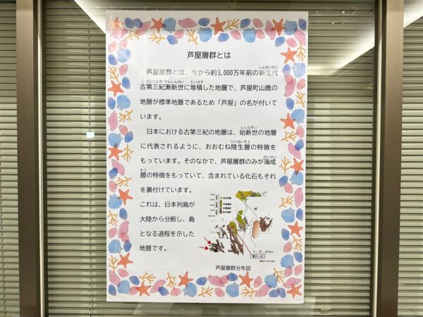 日本列島が大陸から別れる前に日本海のもとになる海ができ、それが「芦屋海」で、その痕跡が残る地層が「芦屋層群」であることが書かれています。