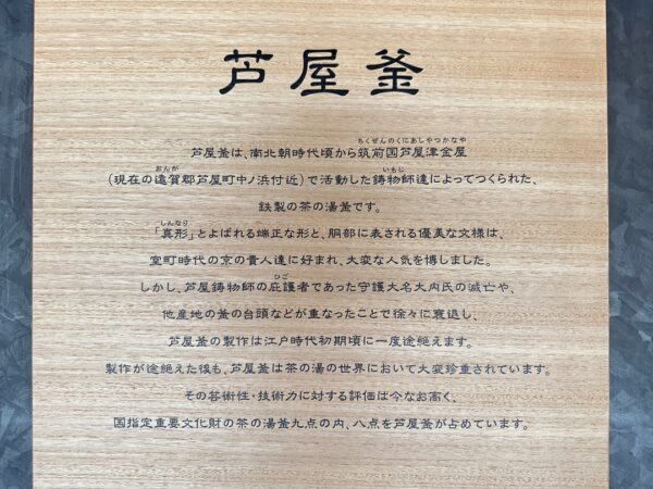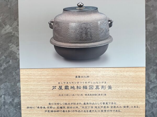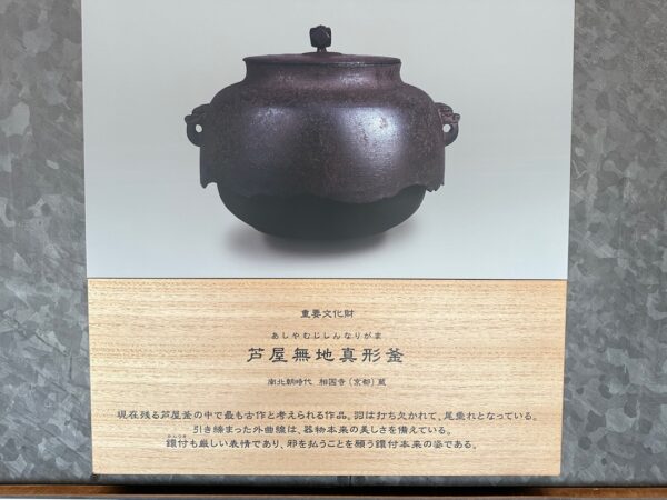 通路に貼ってあった国の重要文化財に指定されている茶釜の説明です。