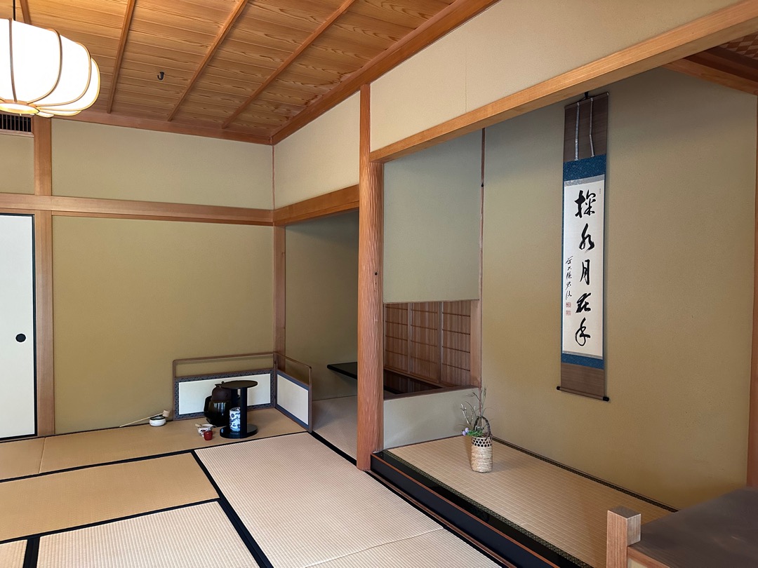 季節によって掛け軸を変えることなど、映画で観たことを思い出しながら説明を聞きました。こんなことなら、抹茶もいただけばよかったと後悔しました。受付で「どうですか」と言われた時に、「抹茶はいいです」と言ってしまったのです。でも、その価値(たぶん+400円)は十分にあっただろうと思います。あ〜〜大失敗