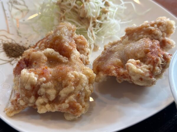 唐揚げは、肉に味がなく、塩コショウをつけていただくものでした。
