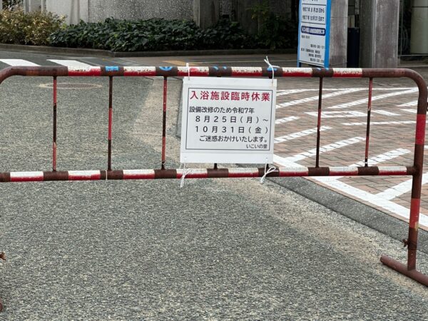 なんと臨時休業でした。今日はお風呂なしです。