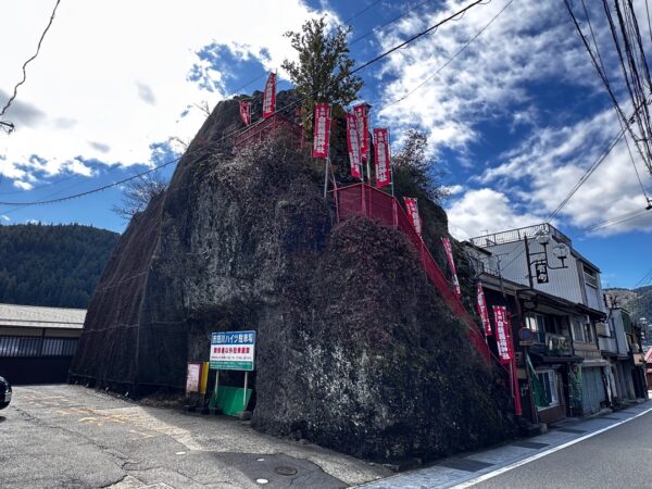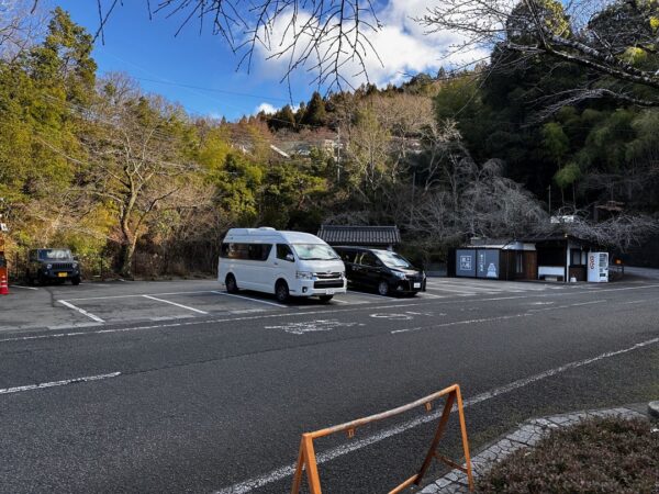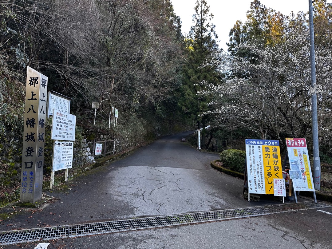 というわけで、ここの駐車場(現在地)から右側のくねくねした道を歩いて郡上八幡城に歩いていきます。城の横にも駐車場がありますが道が狭いことから歩いて行くことにしました。郡上八幡の町を観る上でもここの駐車場が適していると判断しました。町中にはいくつか駐車場がありますが、有料のところが多いです。