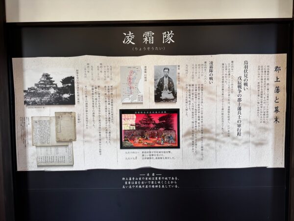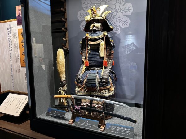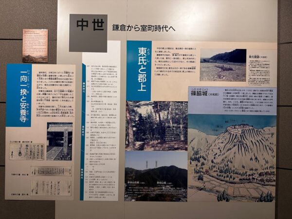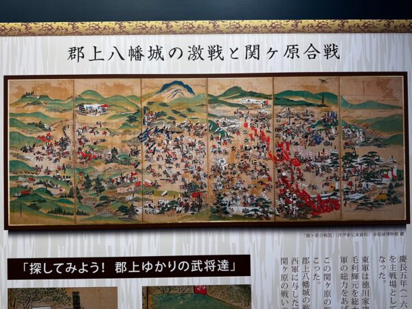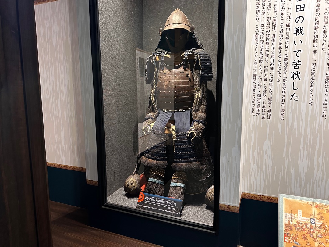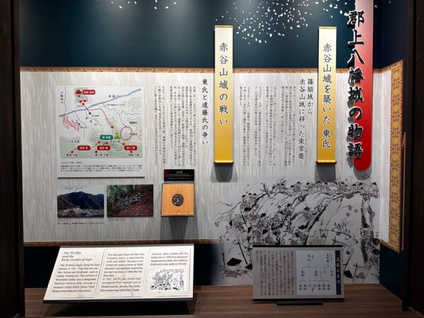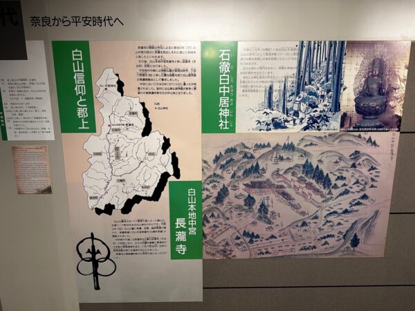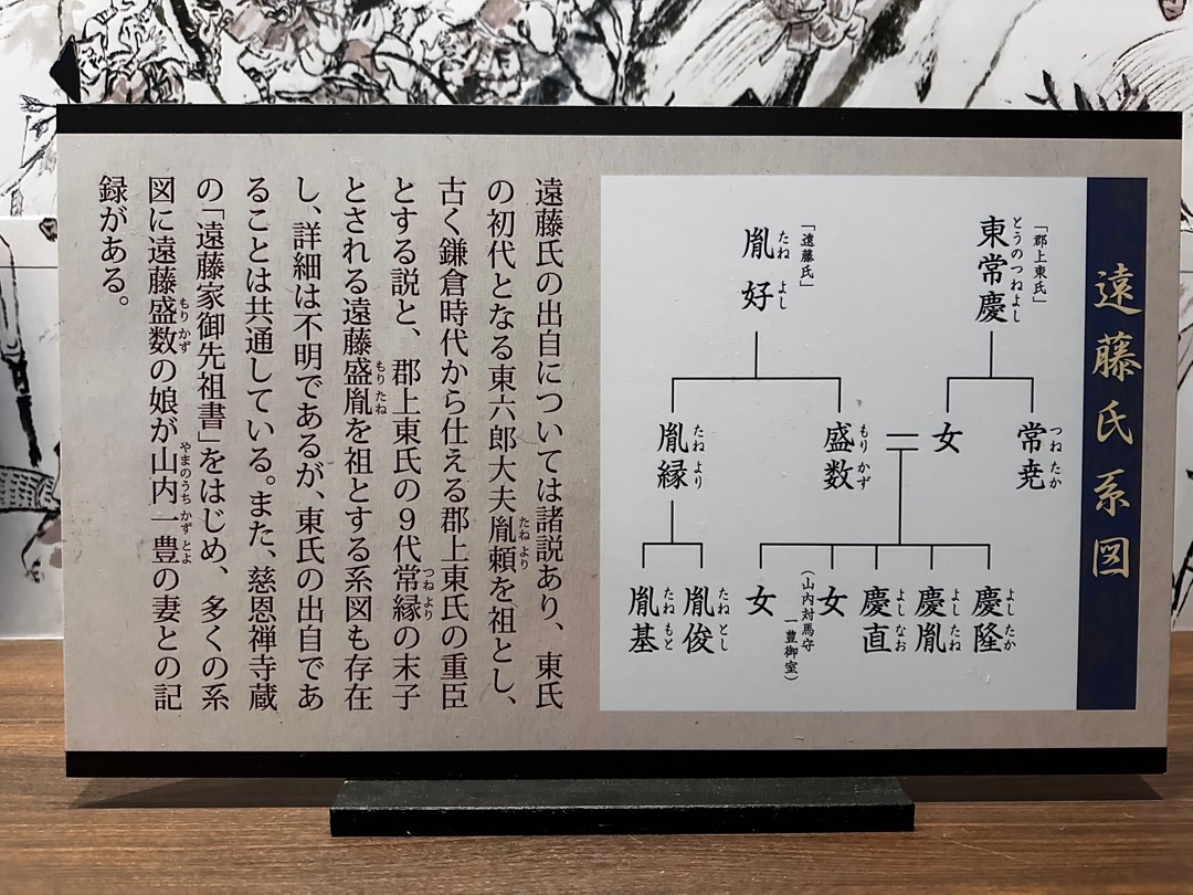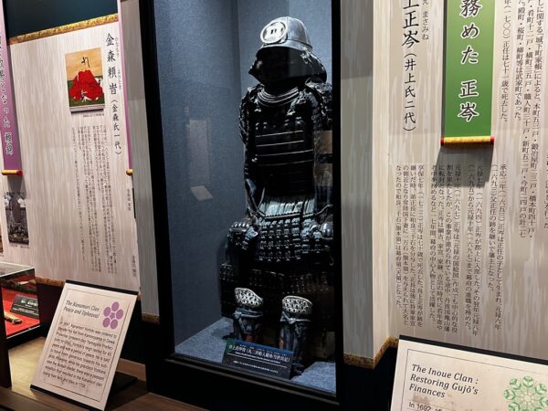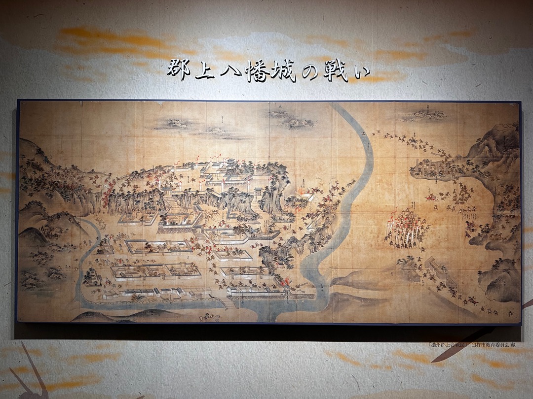 駐車場の脇に山内一豊とその妻(千代)の像がありました。千代の出自に関しては、長宗我部元親の娘という説や、司馬遼太郎の功名が辻では土佐出身の女性などいろいろな説があります。ここ郡上市では、郡上八幡城の始祖である遠藤盛数の娘という説を推しており、いろいろなところで、それを裏付ける史料が展示されていました。