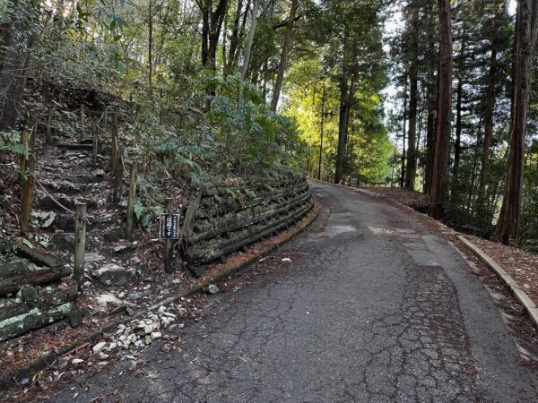 ところが、このくねくねした道を直登する道がありました。写真左に写っている少し足場の悪い道です。ここを登ると約3分短縮できるそうで、