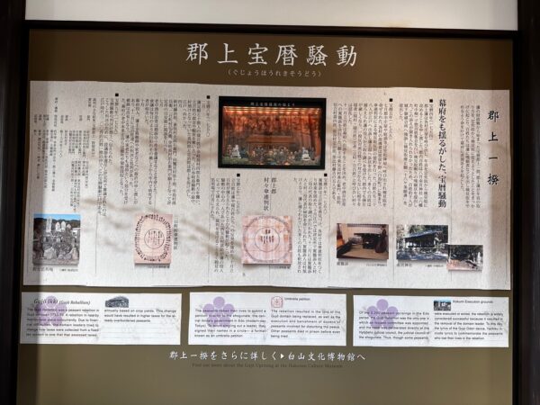 城を降りると車は駐車場に置いたまま、こちらまで歩いていきました。ここは、郡上八幡の歴史や生活文化、技・アート、郡上おどりなどを展示紹介した施設です。