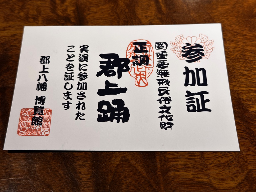 自分たち以外に台湾から来られた方々が30名くらいいらっしゃいましたので、通訳を交えて約15分の実演を拝見しました。2人の先生の模範演舞を拝見した後、日本代表がわが調査隊の助手、台湾代表が5名、前に出て先生と一緒に踊らされ、いや踊りました。動画を撮りましたが、絶対にブログに載せちゃダメと釘を刺されましたので、載せません。
