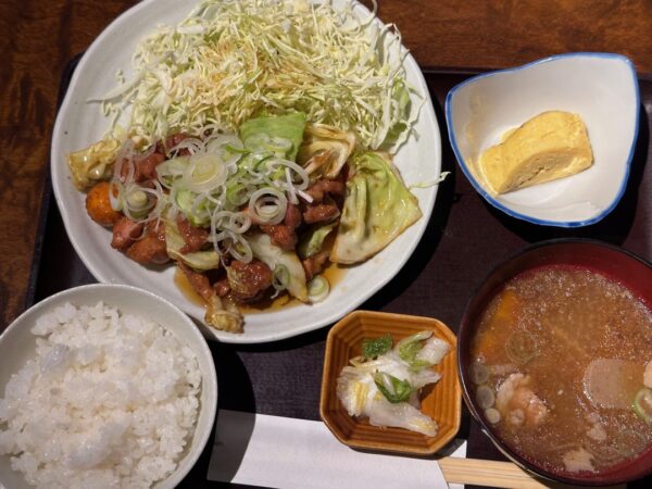 鶏ちゃんとは、このあたりの名物です。お店によって、使っている部位や味が違うのだそうです。味噌味でとても美味しかったです。ご満悦おばさんも同じものでした。