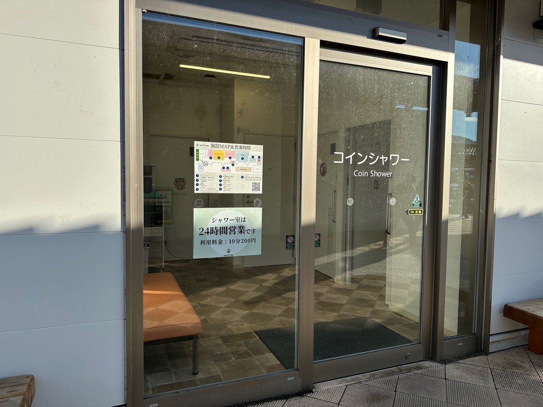 24時間営業のコインシャワー(10分 200円)があります。事前にあることを知っていたものの、清潔かどうかが気になって温泉に行きました。