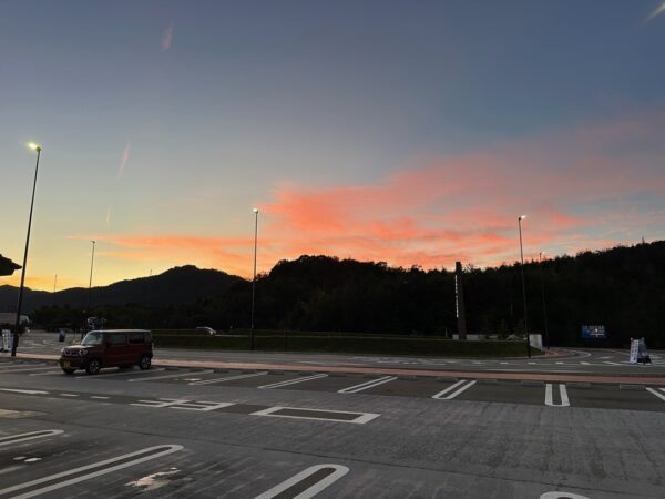 今朝の道の駅です。車中泊をした人は、普通車で30台くらいだったかと思います。