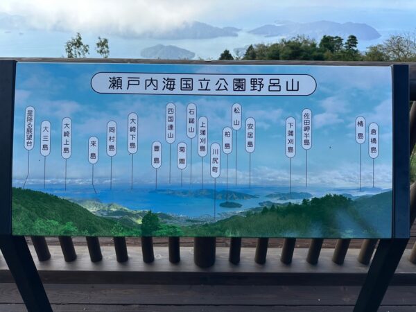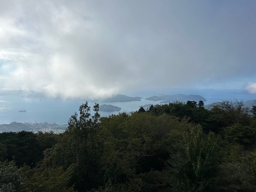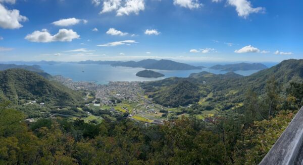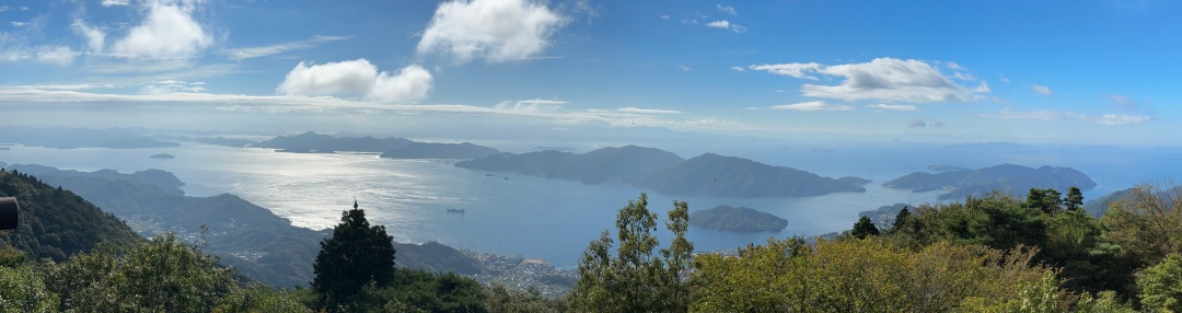 かぶと岩を観ている間に雲が消えました。安芸灘とびしま海道と言われる下蒲刈、蒲刈、豊浜、豊が一望できました。