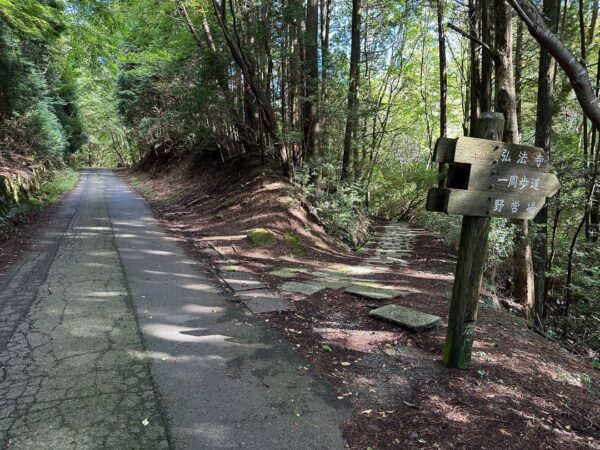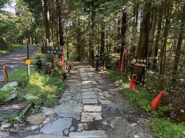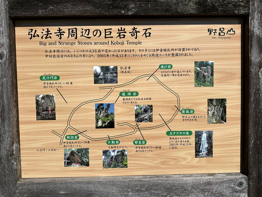 この展望台から弘法寺を目指して遊歩道を歩いていきました。花崗岩を切ったタイルを敷き詰めた道です。(写真右の道)