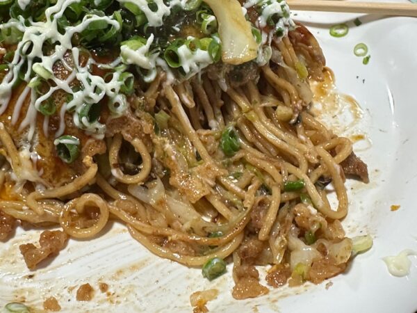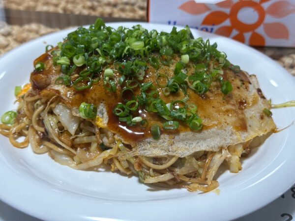 お好みそば(肉・玉)800円です。すごいボリュームでした。
