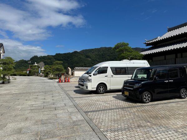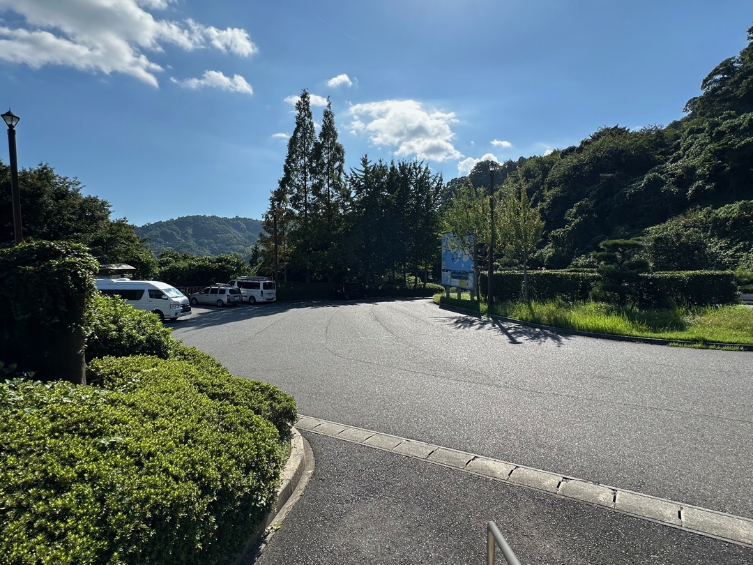 野呂山ビジターセンター前駐車場に車を駐めました。道が狭そうなイメージがありますが、センターラインのある道路でまったく問題ありませんでした。