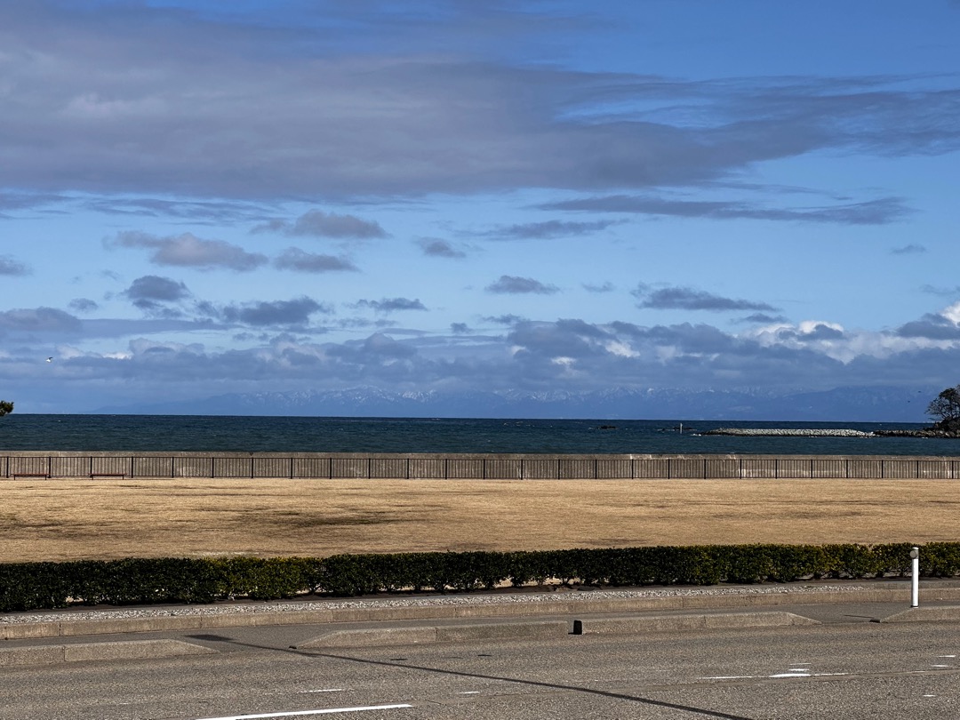 昨日、到着した時には雲が少しあったのですが立山連峰を微かに観ることが出来ました。