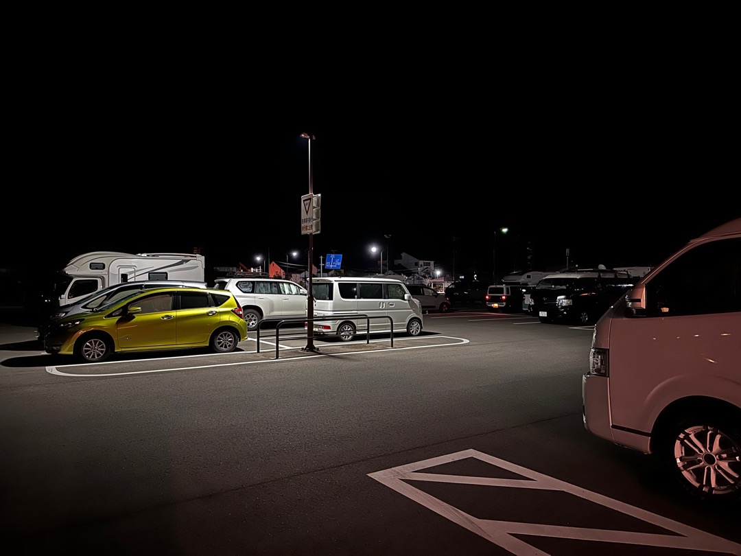 道を挟んで向かい側にも駐車場とトイレらしきものがあり、そちらに泊まっている人もいました。