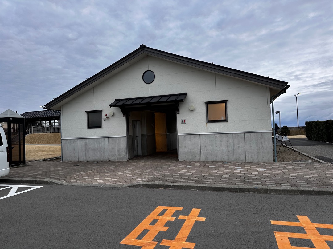 24時間トイレは、建物向かって左側に小6、大3(和1、洋2 洗浄便座付き)の中くらいのトイレがあります。ここの駐車場の規模から言えば、少し小さいのではないかと思います。助手の話によると右側にも少し小さめの24時間トイレがあったようです。