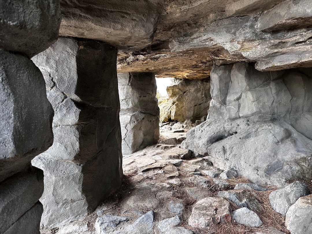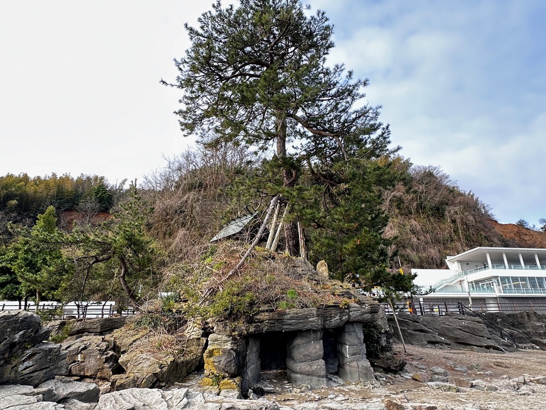自然に出来たにしては人工物のような形をしていますし、人が造ったにしてはつなぎの部分が自然っぽかったりして不思議な岩です。