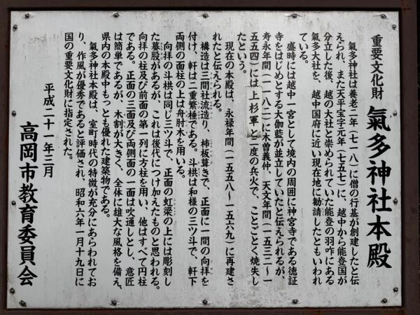 本殿は、杮葺三間社流造でした。富山県の本殿としてはもっとも優れたの建築物ということに対しては、本当にそうかなぁと思いました。