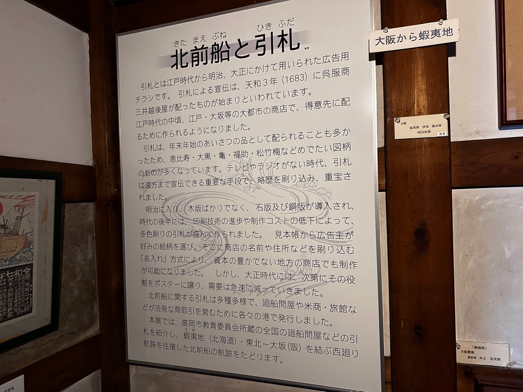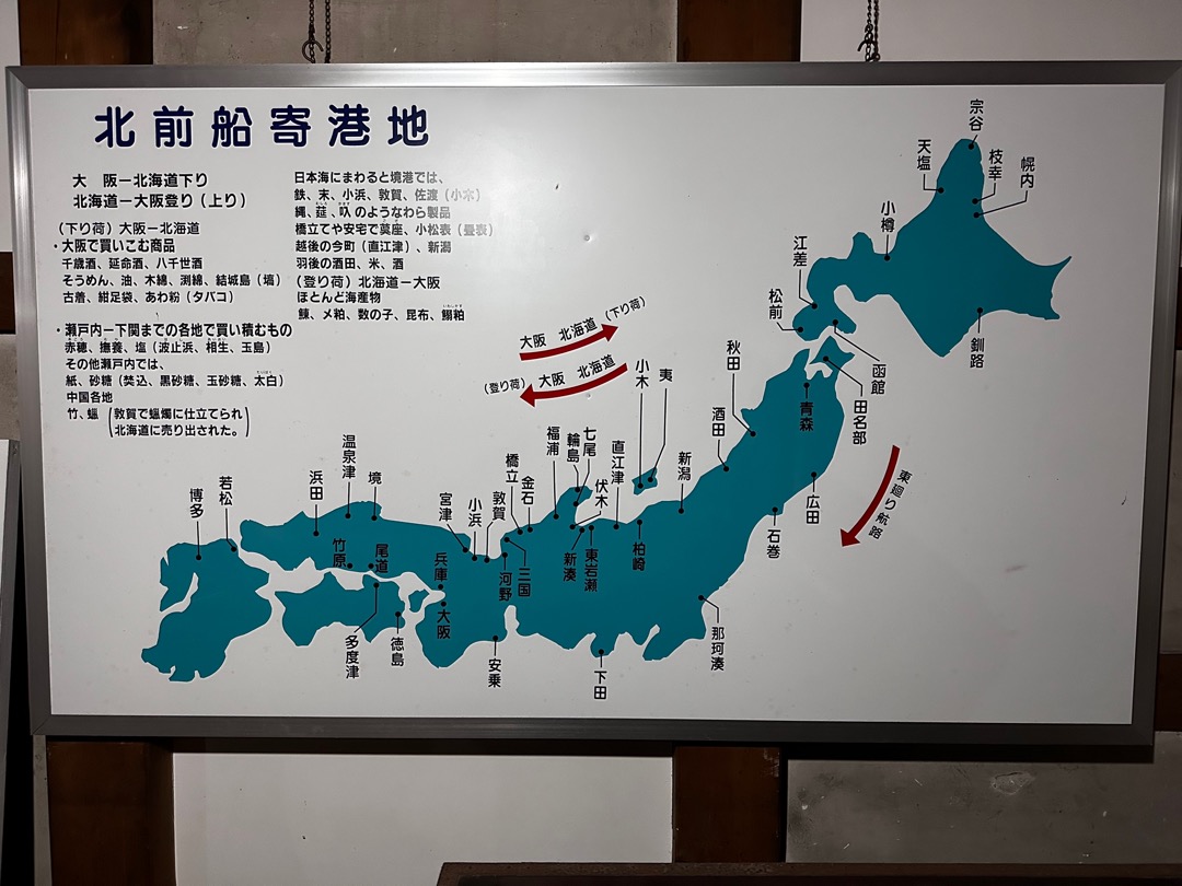 入館料は、300円(JAF240円)です。ガイドさんの説明を聞きながら拝見しました。とても、わかりやすい説明で、これまで、北前船に関する施設で見聞きしたことがいろいろと繋がって面白かったです。