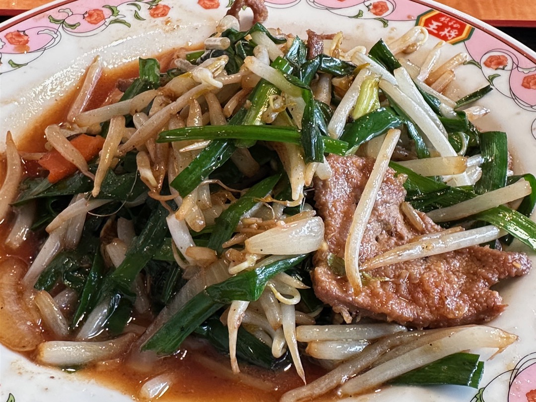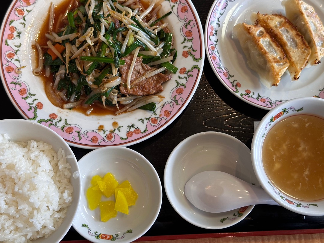 中華セット ニラレバ炒め、餃子3ヶ、ライス(中)、スープ、漬物1,116円です。