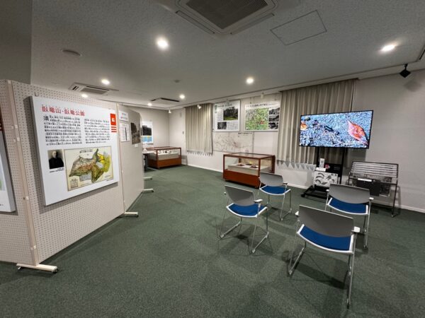 臥竜公園 P1に車を駐めました。博物館の正面にある駐車場です。入館料は、200円です。