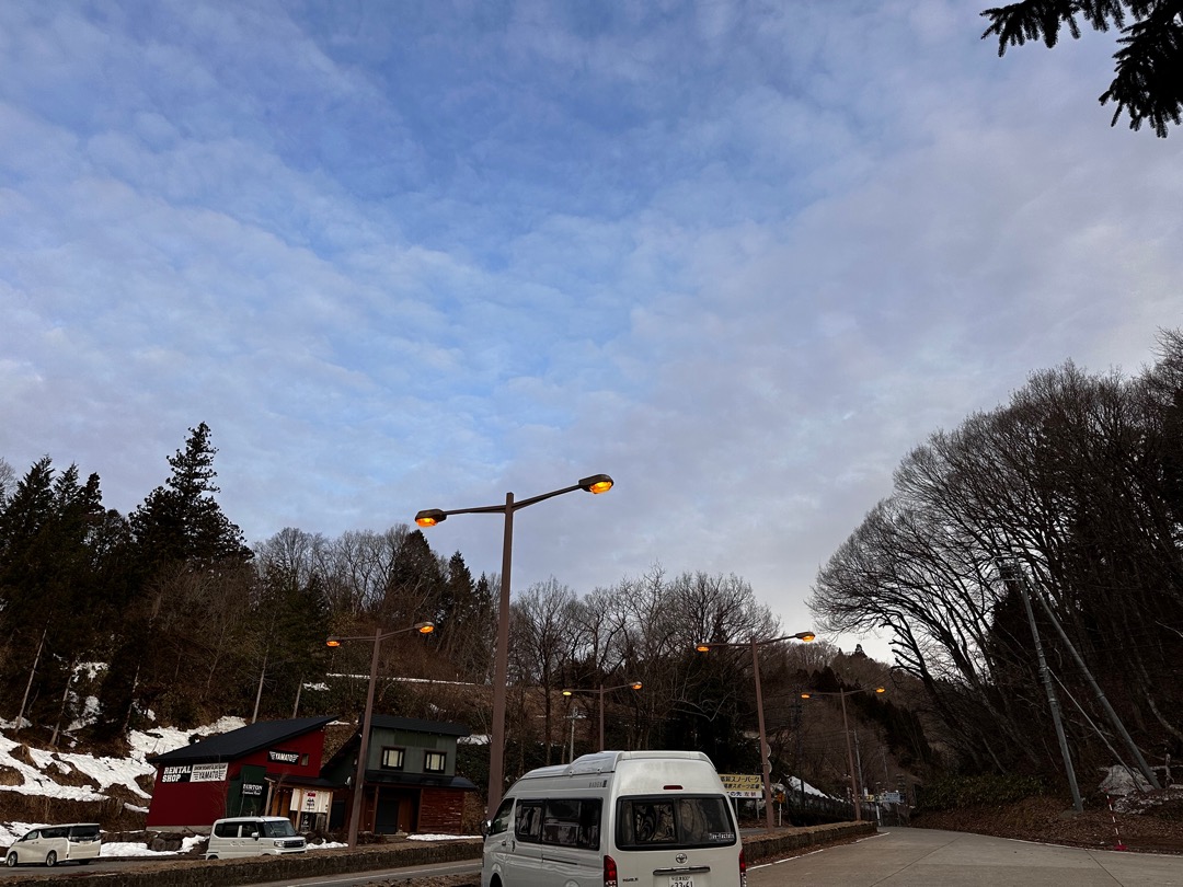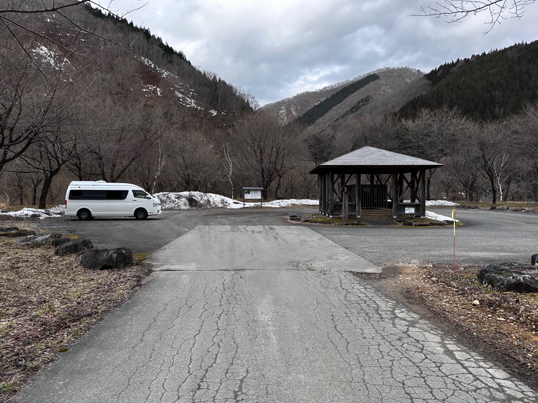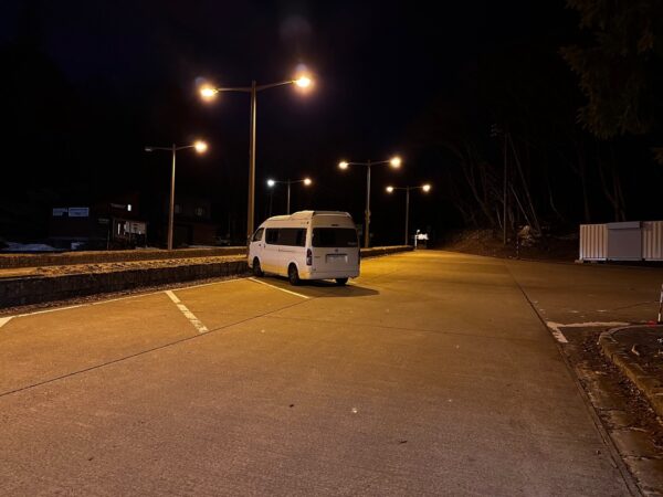 そして朝です。車中泊をしたのは両側の駐車場合わせて6台くらいでした。