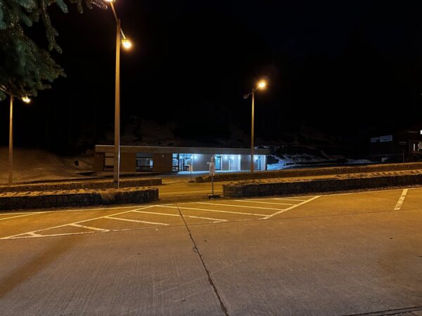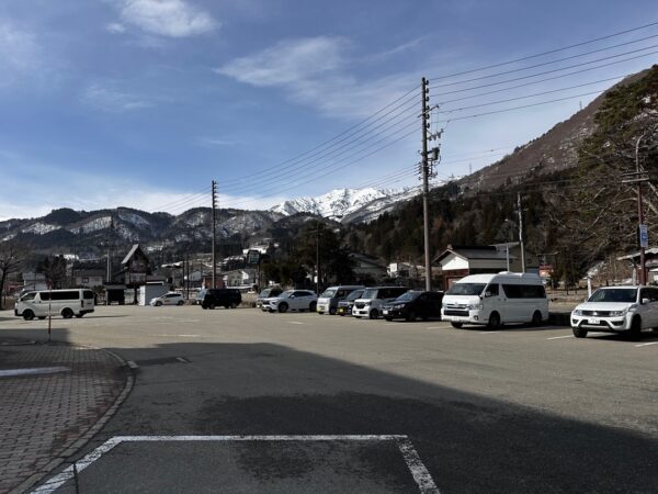 ここの駐車場は斜めになっています。僕たちは許容範囲でしたが、気になる人には気になる傾斜度です。(当たり前か)